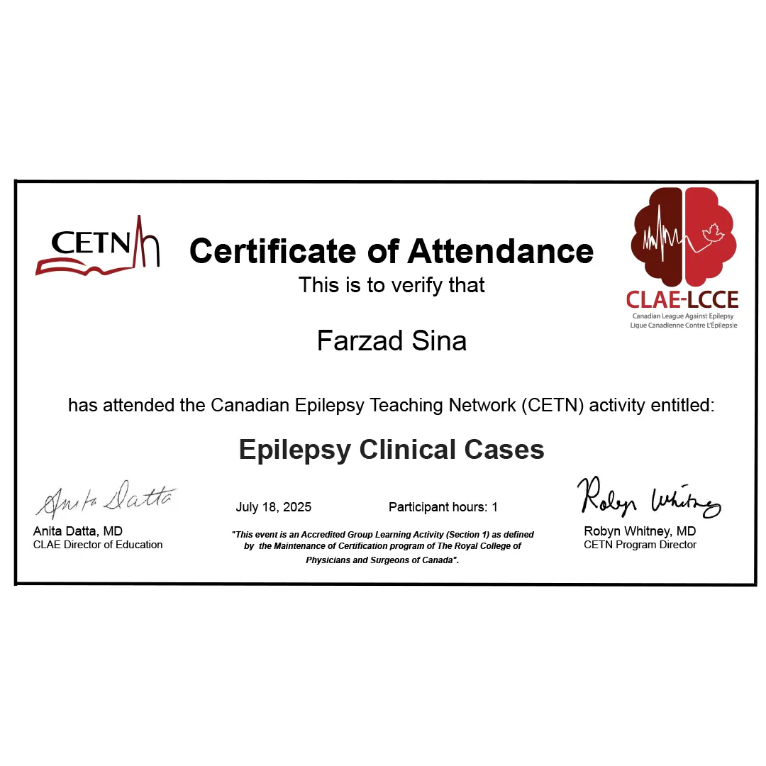 پس از اتمام طرح تخصصی، دوره تکمیلی فوق تخصصی اپی لپسی خود را در دانشگاه های UCL انگلستان (Queen Square) در سال ۲۰۱۳ و سپس در سال ۲۰۱۵ در Cleveland Clinic واقع در اوهایو ایالات متحده گذرانده است و در ادامه مدرک فلوشیپ اپی لپسی را از دانشگاه علوم پزشکی تهران اخذ نموده است. دکتر فرزاد سینا دوره های تکمیلی در زمینه جراحی کم تهاجمی اپی لپسی وsEEG را در مراکز تخصصی معتبر فرانسه شامل TIMONE MARSELLEI Hospital and ROCHILD FOUNDATION HOSPITAL در سال های ۲۰۲۲ و ۲۰۲۳ طی کرده است و در حال حاضر به عنوان دانشیار بیماری های مغز و اعصاب و فلوشیپ اپی لپسی در بیمارستان فیروزگر تهران مشغول خدمت به بیماران می باشند.